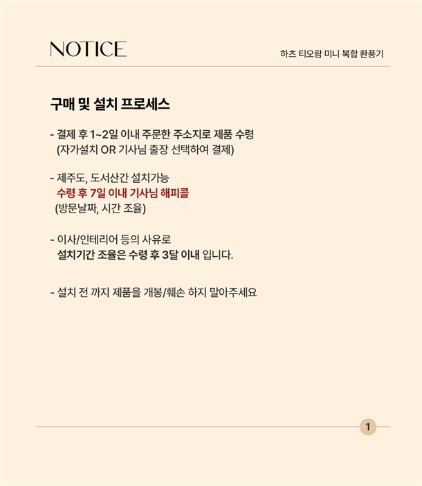 · 설치날짜 : 해피콜 시 상담원과 조율해주셔야 합니다