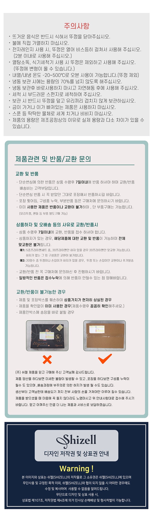 · 상품 불량 사유와 사진을 남겨 주시면 빠른 처리가 가능합니다.